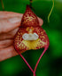 • Flowers: The blooms of Dracula bella are large, showy, and typically display a combination of brownish, maroon, or purple hues with lighter, often white or cream, centers. The flowers are triangular in shape, with long, tail-like sepals that give them a "monkey face" or whimsical appearance, a hallmark of the Dracula genus.